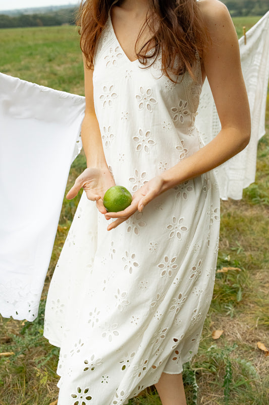 Stay forever in love, with romantic white summer dresses made in beautiful natural fabrics and adorned with delicate laces and embroideries.